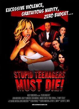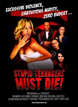 Well perhaps acclaimed isn’t the right word. Either way, Stupid Teenagers Must Die! first crawled out from under the stairs as Blood and Guts before deciding to be Stupid. I was approached by the Stupid producers to help bring some semblance of class and professionalism to their Stupid film, I turned them down. Then they offered to pay me. After much haggling we cut a deal and I created their Stupid poster.